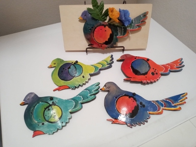 Club members create works of art using a variety of clays, glazes and firing techniques.